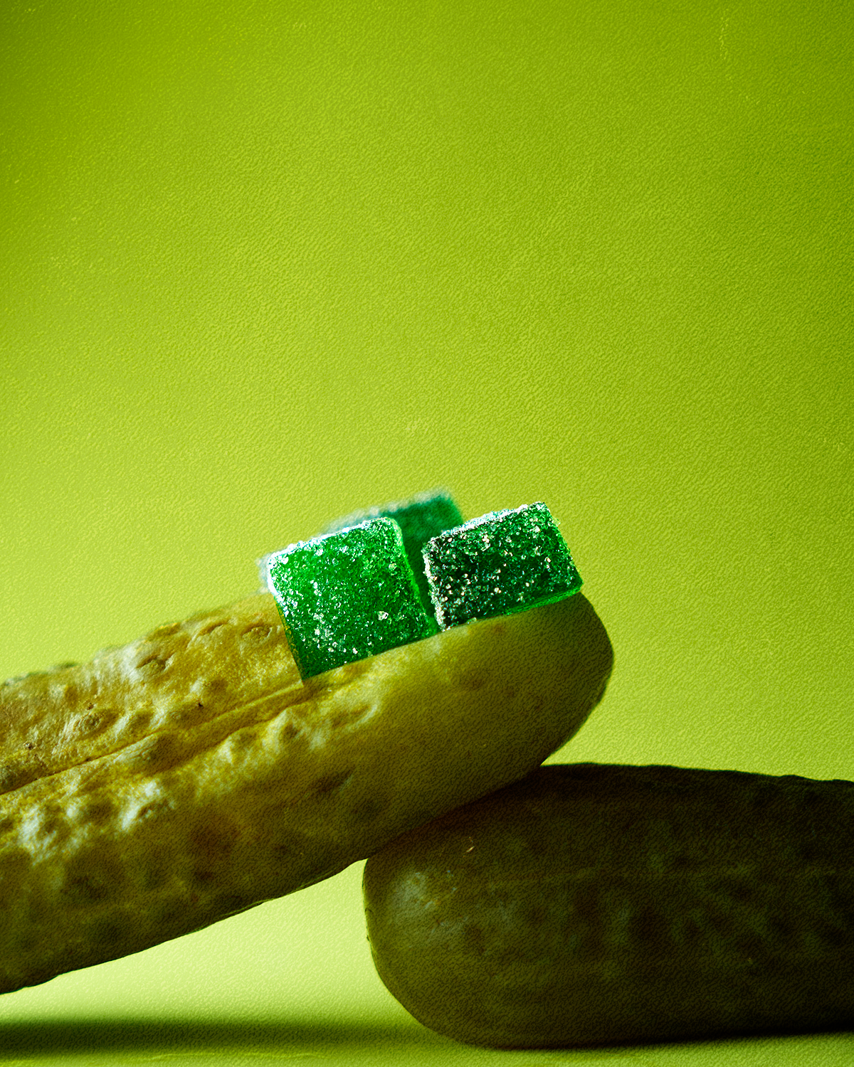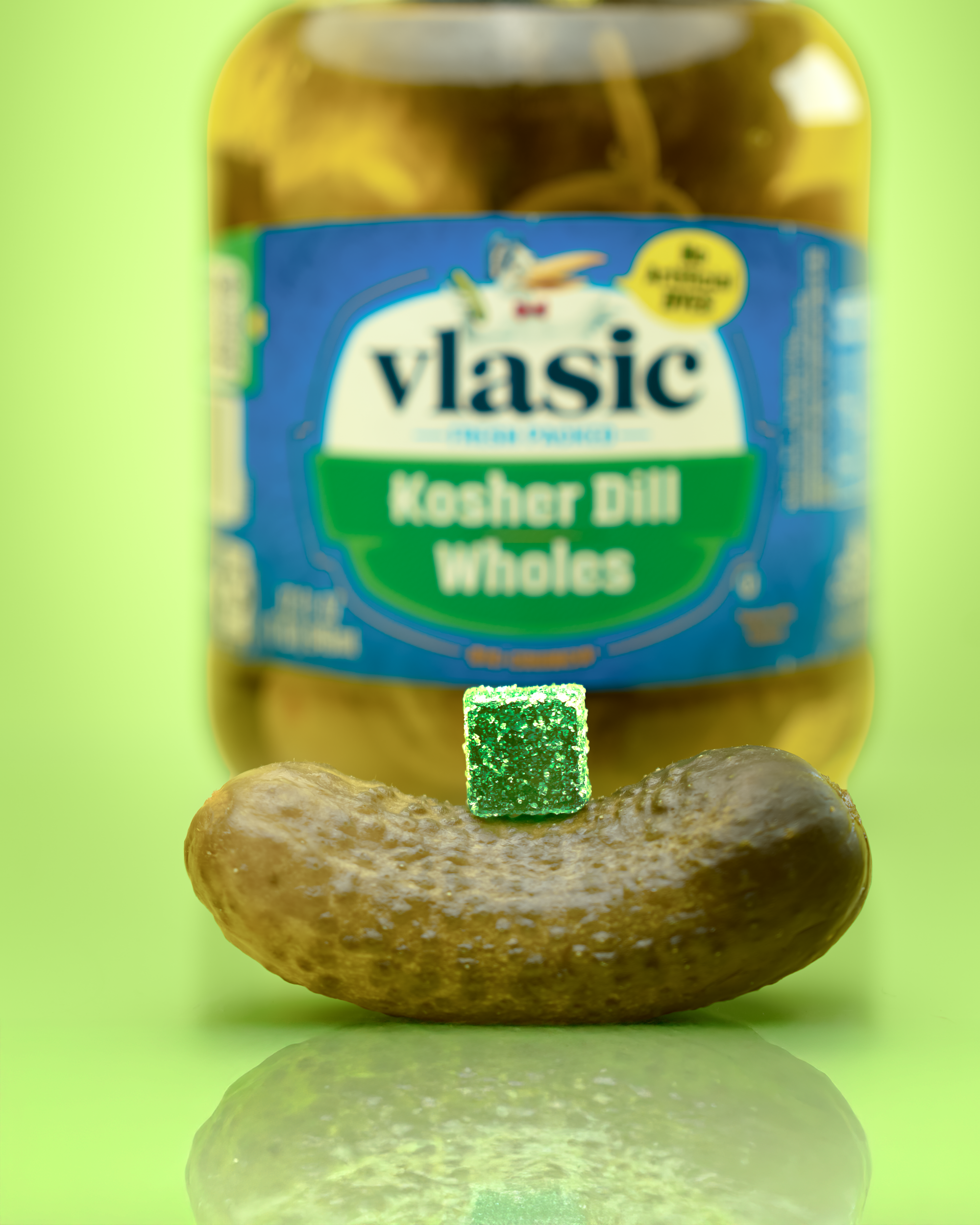 Kosher Dillight: Kosher Gelatin, Pectin, Chicory Root Syrup, Sorbitol, Stevia, Sugar, Natural Dill Flavor, Citric Acid, Food Color, Hemp Derived Full Spectrum CBD, Hemp Derived THC Extract
